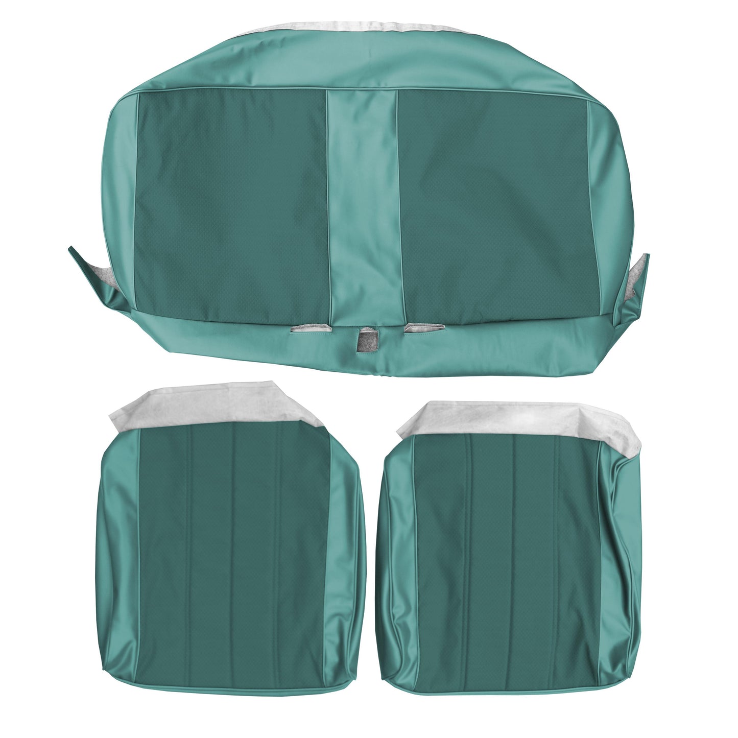 66 CHEVELLE/MALIBU SPLIT BENCH CLOTH UPHOLSTERY - SRM DARK TURQUOISE CLOTH/SRM LIGHT TURQUOISE