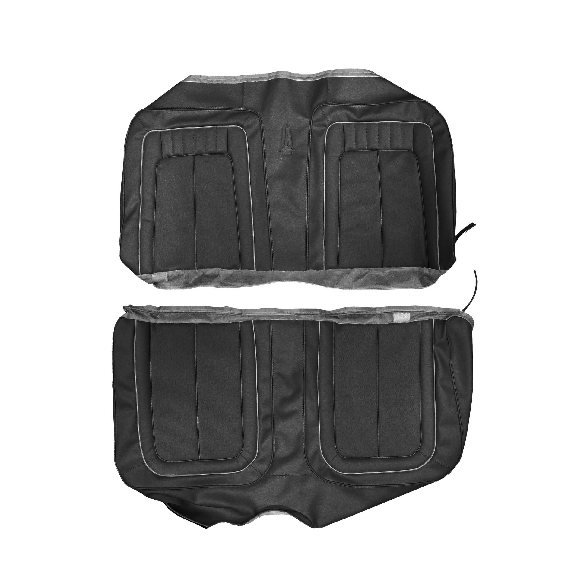 • THIS LEGENDARY CONVERTIBLE REAR SEAT UPHOLSTERY FEATURES AS-ORIGINAL RANGER GRAIN INSERTS AND COACHMAN GRAIN SKIRTS WITH HEAT SEALED PLYMOUTH EMBLEM ON CENTER OF REAR SEAT
