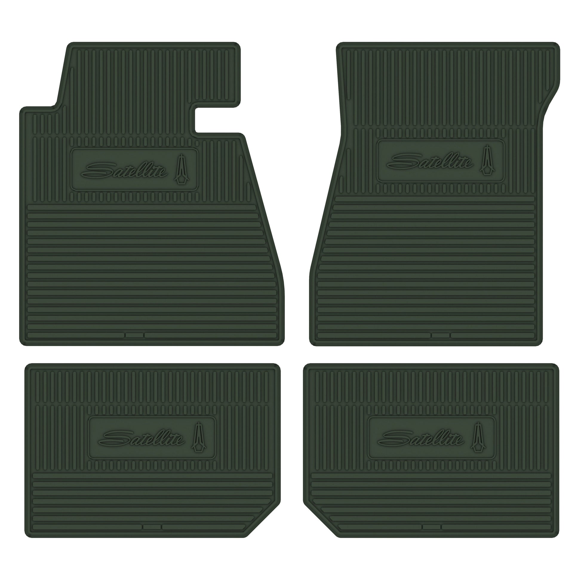 • 1966 SATELLITE NEXT GENERATION CUSTOM VINTAGE RUBBER STYLE FLOOR MATS DESIGNED TO FIT THE ENTIRE FLOOR PAN OF YOUR CAR. CHRYSLER/DODGE/PLYMOUTH LICENSED LOGOS ARE FEATURED ON BOTH FRONT AND REAR MATS.