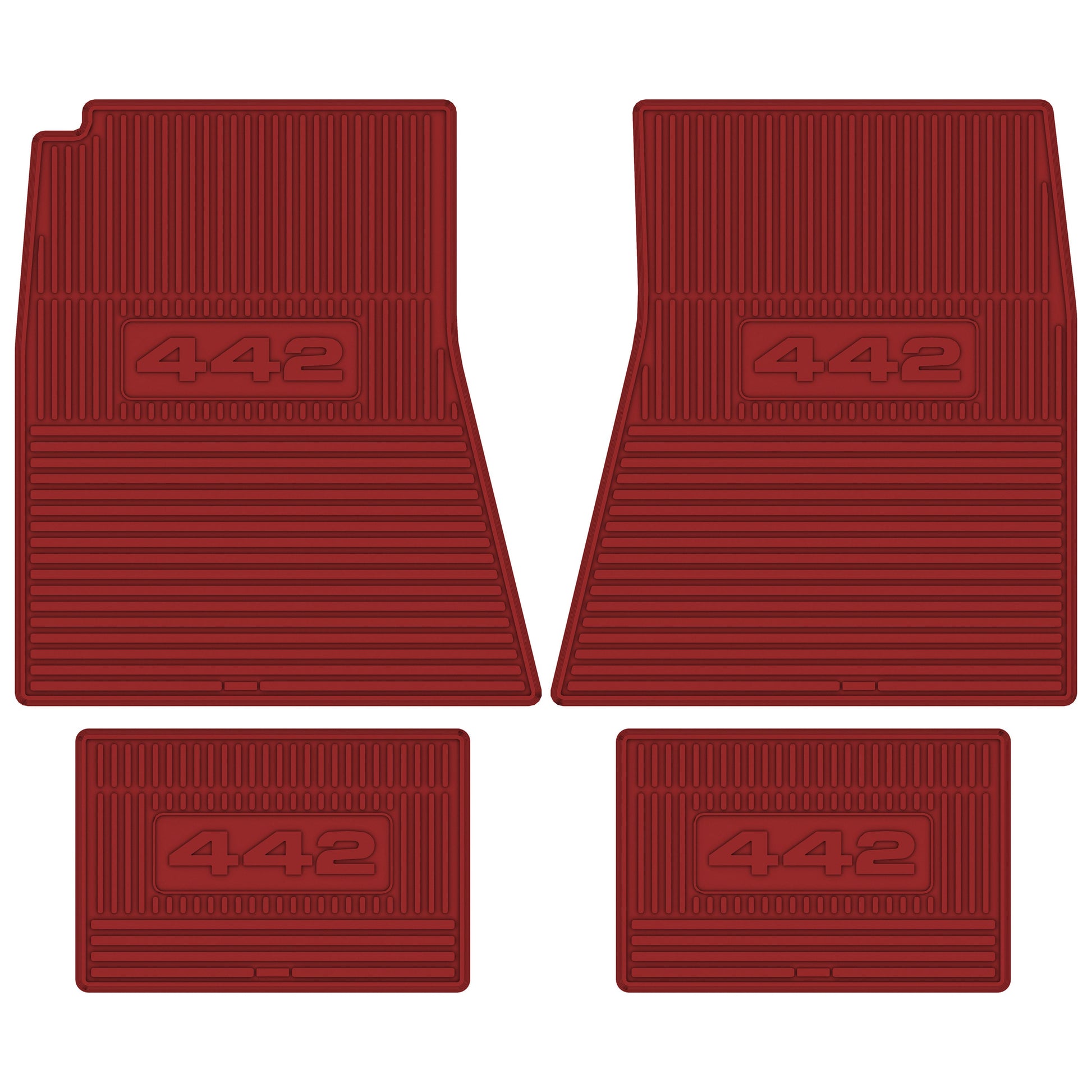 • 1968 442 NEXT GENERATION CUSTOM VINTAGE RUBBER STYLE FLOORMATS DESIGNED TO FIT THE ENTIRE FLOORPAN OFYOUR CAR. GM LICENSED LOGOS ARE FEATURED ONBOTH FRONT AND REAR MATS.