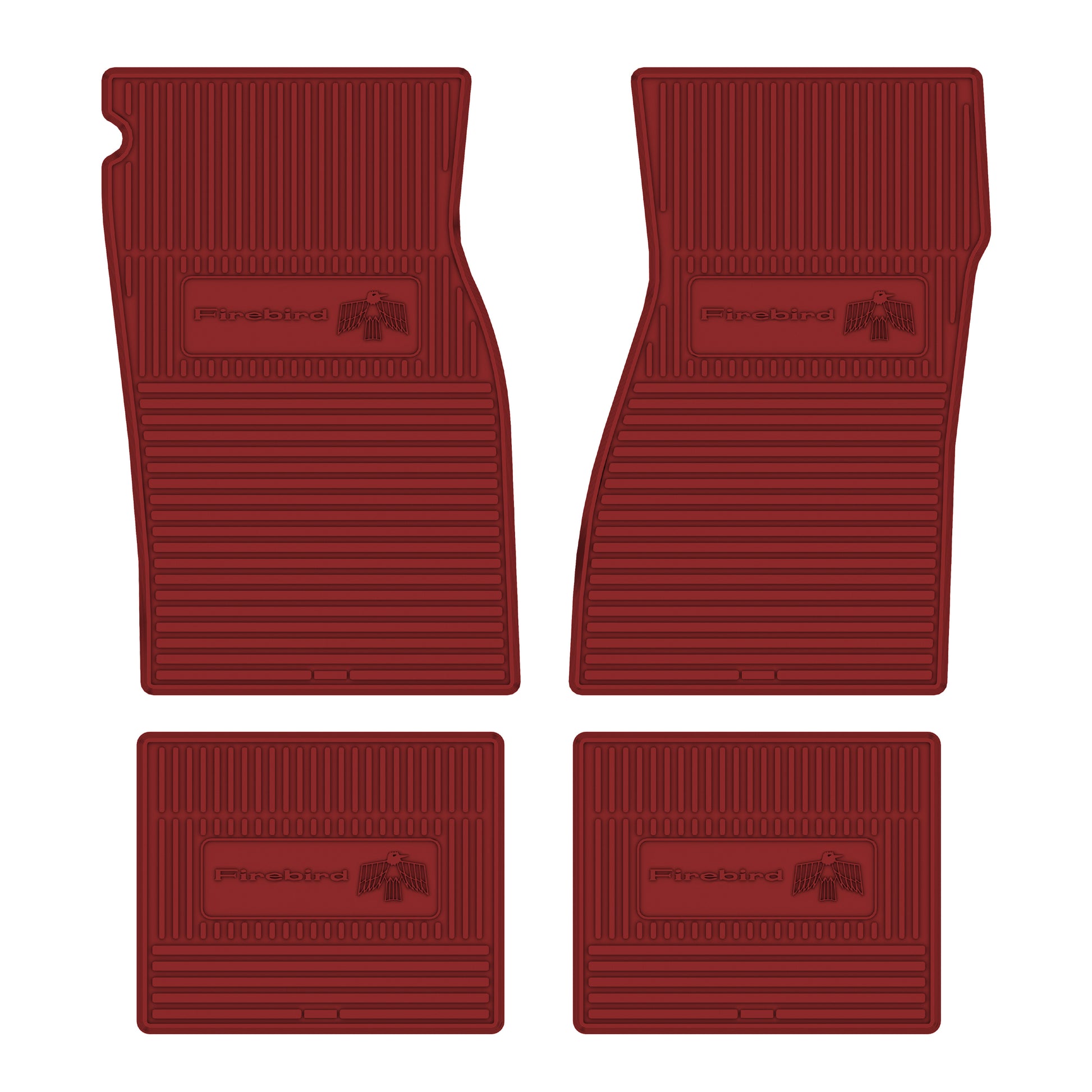 • 1967-1969 FIREBIRD NEXT GENERATION CUSTOM VINTAGE RUBBER STYLE FLOOR MATS DESIGNED TO FIT THE ENTIRE FLOOR PAN OF YOUR CAR. GM LICENSED LOGOS ARE FEATURED ON BOTH FRONT AND REAR MATS.