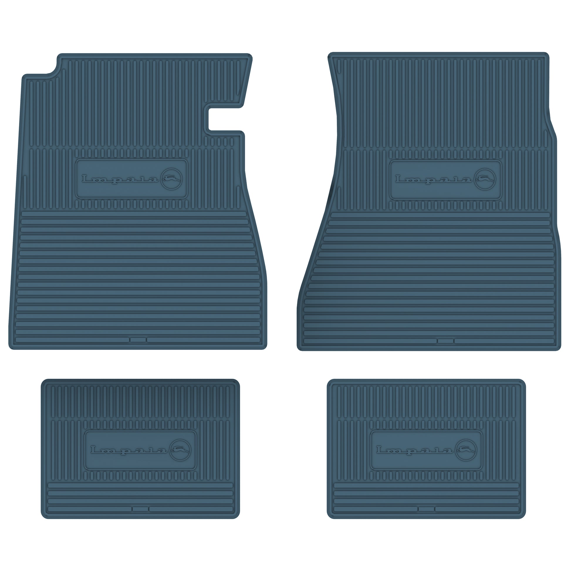 • 1967 IMPALA NEXT GENERATION CUSTOM VINTAGE RUBBER STYLE FLOOR MATS DESIGNED TO FIT THE ENTIRE FLOOR PAN OF YOUR CAR. GM LICENSED LOGOS ARE FEATURED ON BOTH FRONT AND REAR MATS.